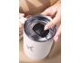 - Плъзгащ се прозрачен капак с магнитно фиксиране – пиеш лесно, без да се разлива